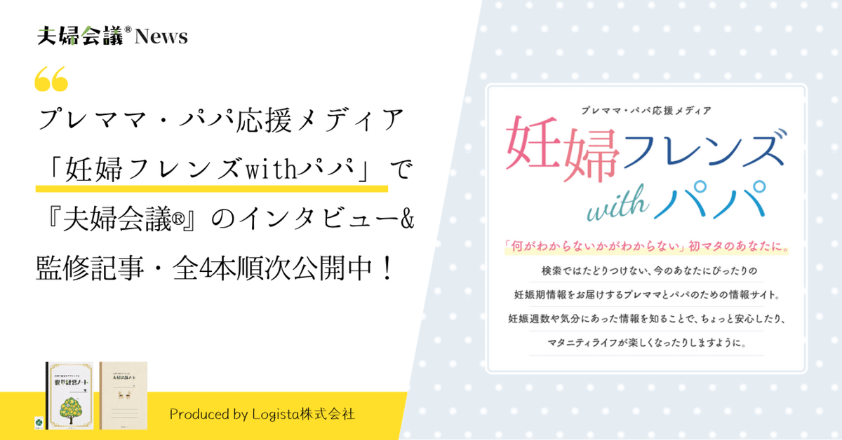 ピジョンの「妊婦フレンズ withパパ」で『夫婦会議®︎』の取材&監修記事を連載中!全4本に分けて「夫婦の対話」のヒントをお届けします夫婦会議®︎ 公式Logista株式会社。