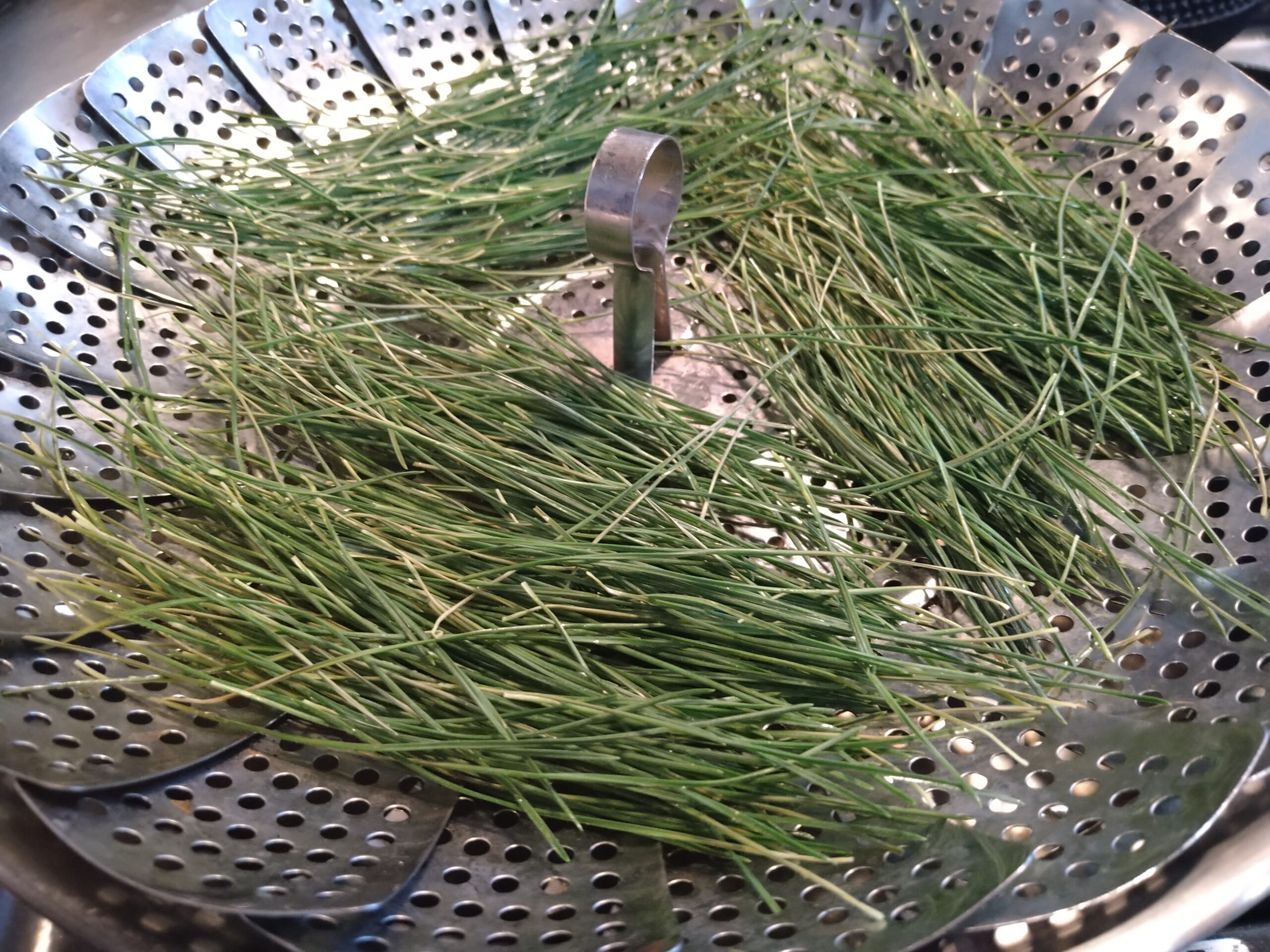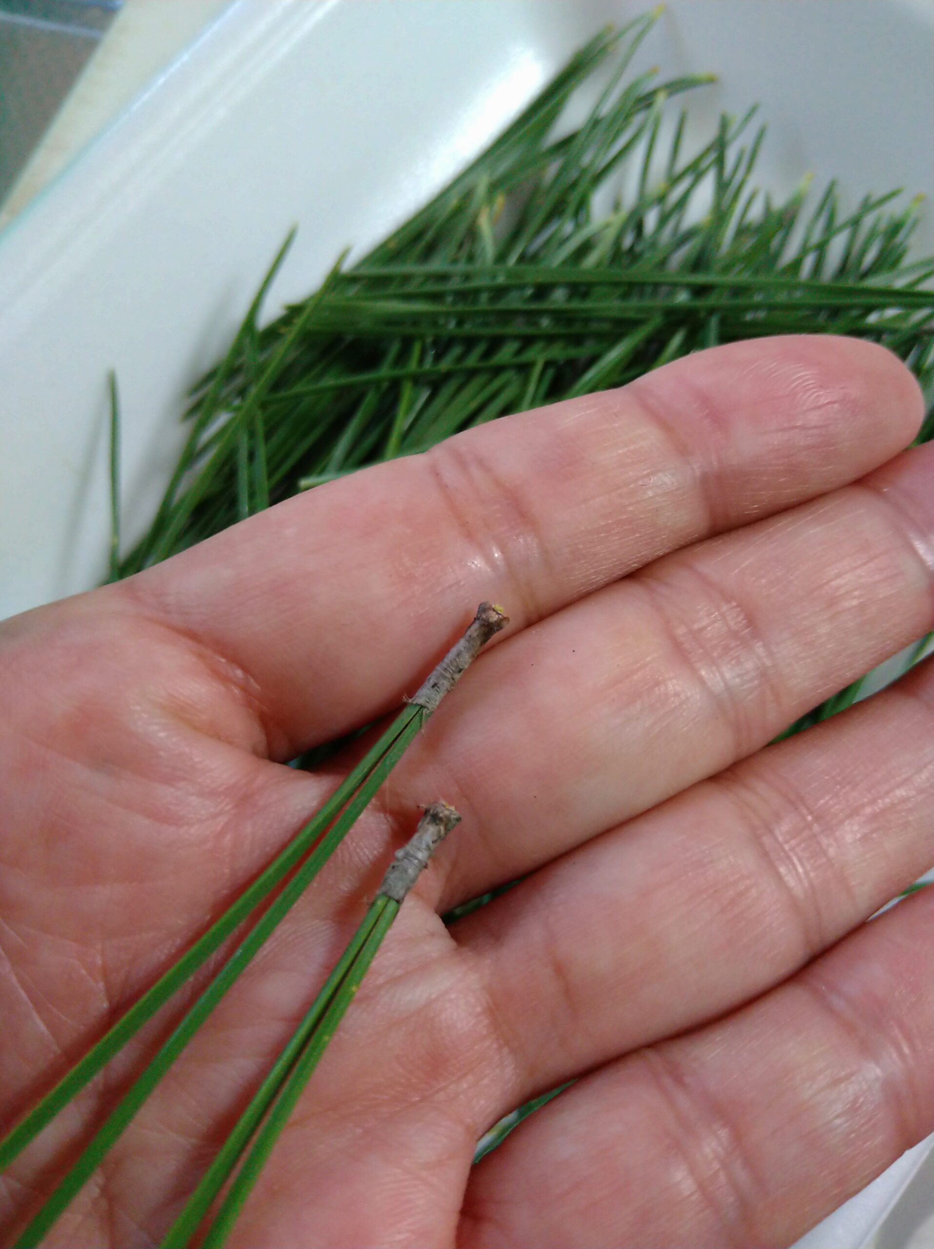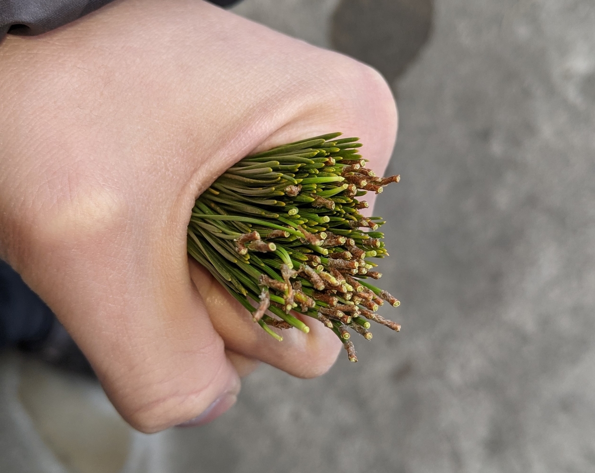 生の葉から松葉茶を作ってみる サバイバル方式?- がらくたはたから。