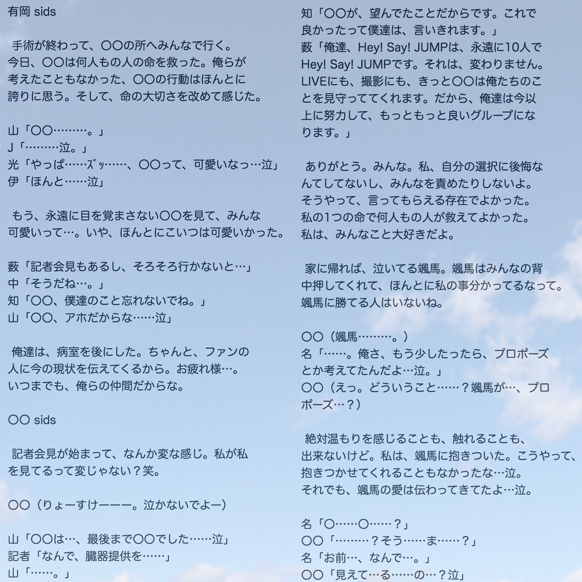 𝐔𝐌𝐈 on X: "紫苑。5〜完結〜 __颯馬 、今までありがとう 泣__4です!↓https:t.co O9csKRWPSx ※名取颯馬と、有岡大貴は別人です! 感想、リプ&DM待ってます😶最後まで、お付き合いありがとうございました❤︎ #JUMPで妄想 #あなたもメンバー。
