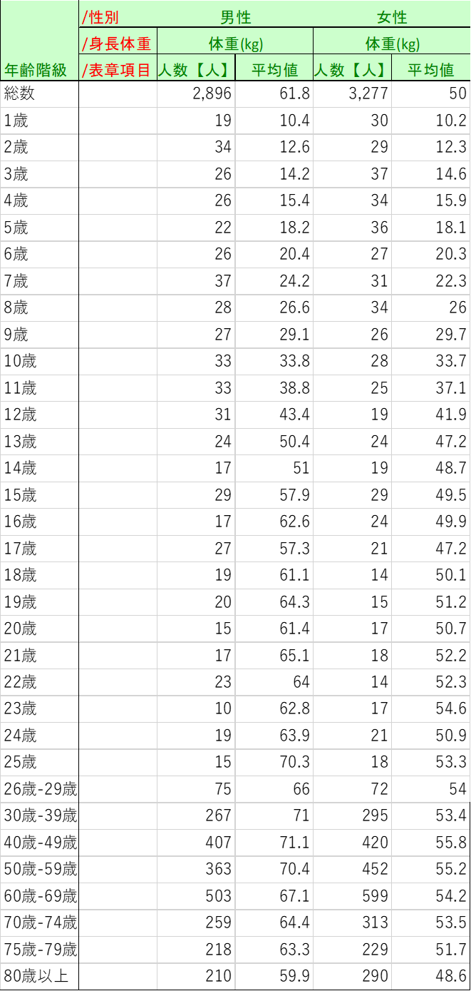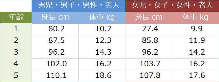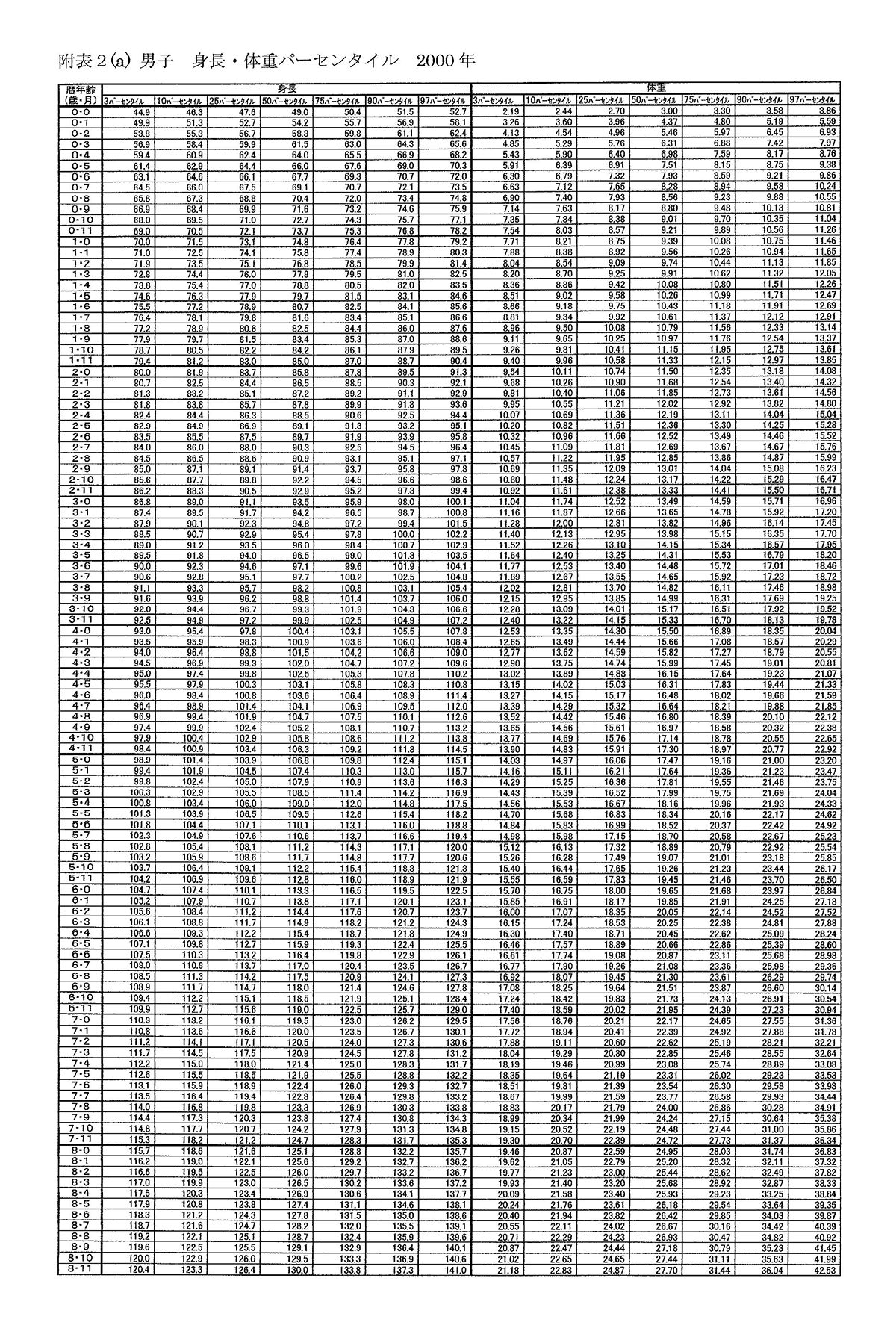 子供の平均体重・男子 男の子 版年齢別身長データも。