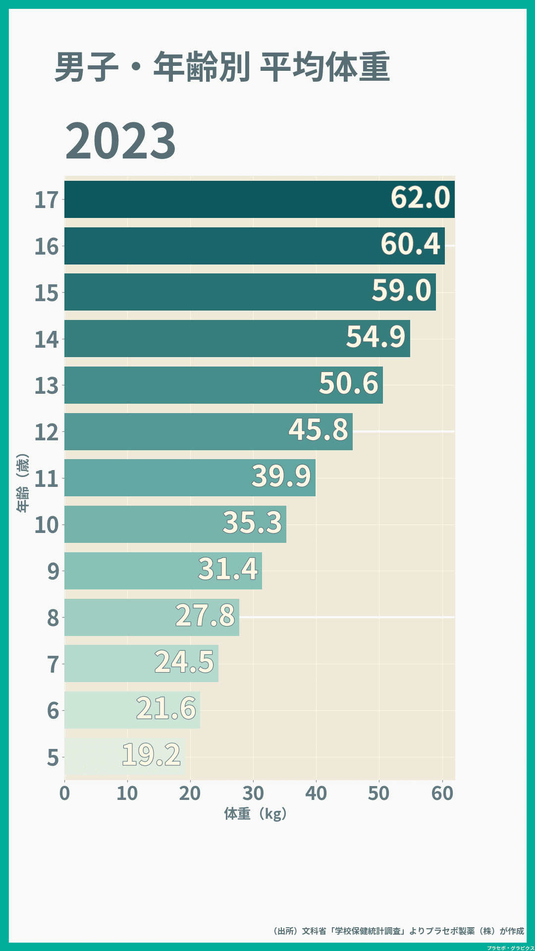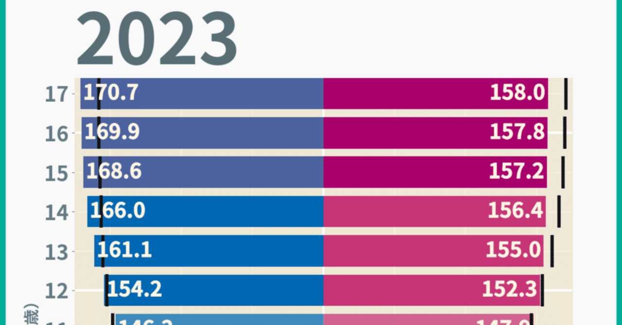 学生の男女別×年齢別×平均身長・体重グラフのフリー素材を無料配布します 2023版 プラセボ・グラピクス。