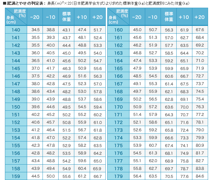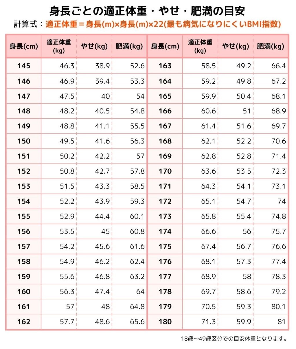 理想の体重表 - あなたの身長に合った健康的な体重を探す。