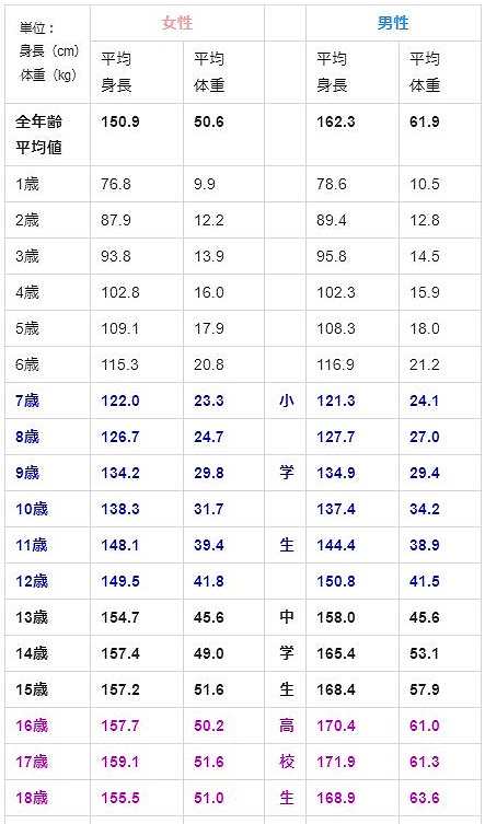 男性年齢別の身長体重平均表と成長のポイント健康的な成長のために。