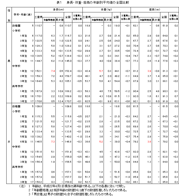 三重県統計データライブラリ:調査の結果 発育状態調査。