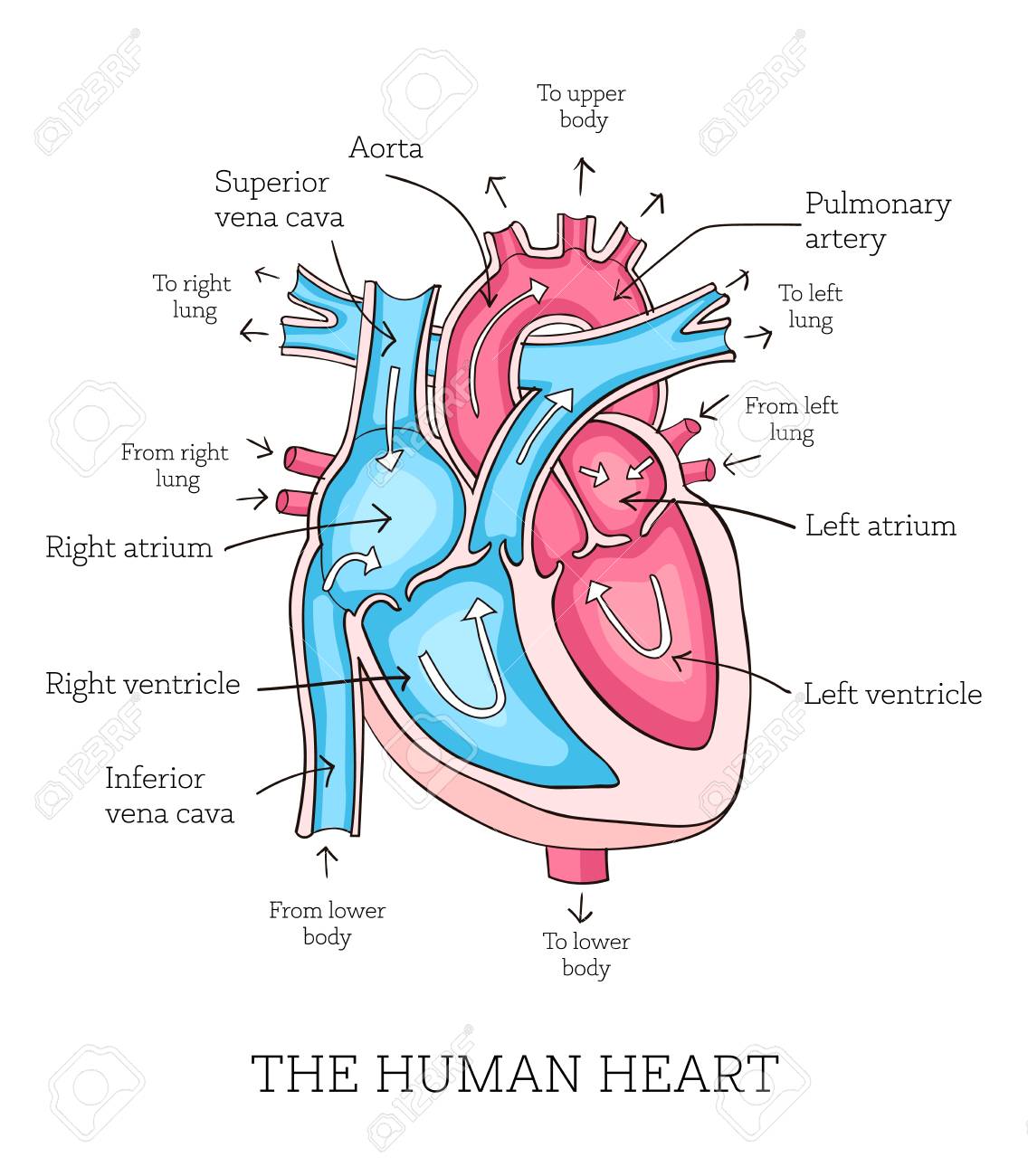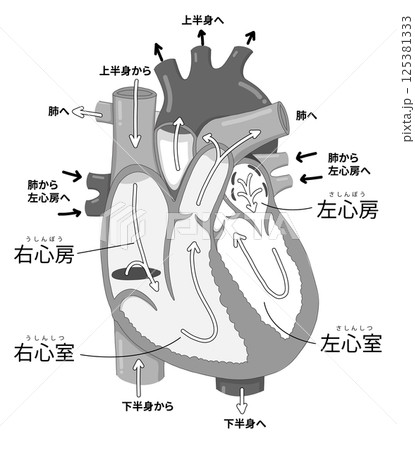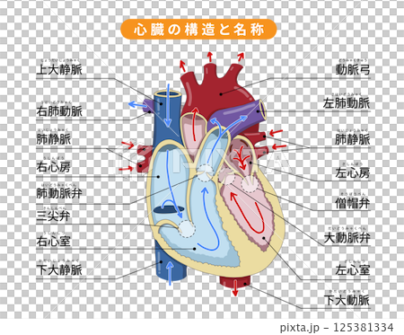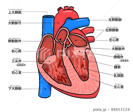 心臓の細かい構造と血液の流れ・各部位の名称がわかりやすい断面イラストのイラスト素材125381333- PIXTA。