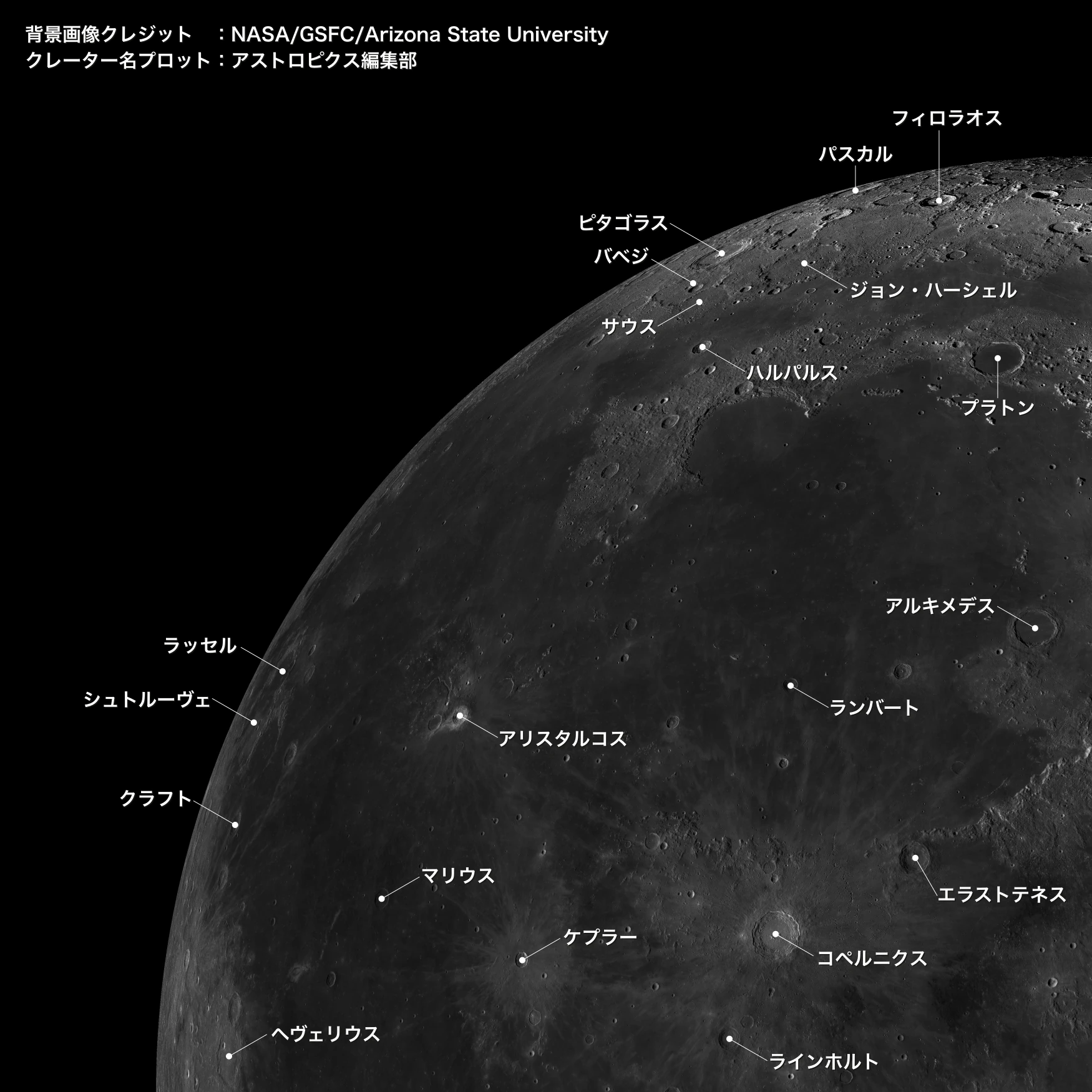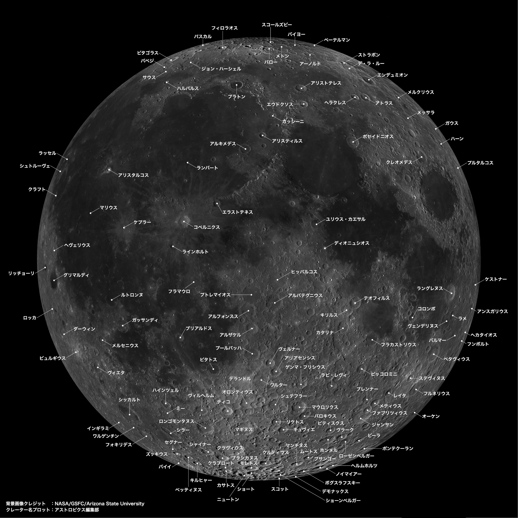月面 表側 の主なクレーターの位置と名前アストロピクス。