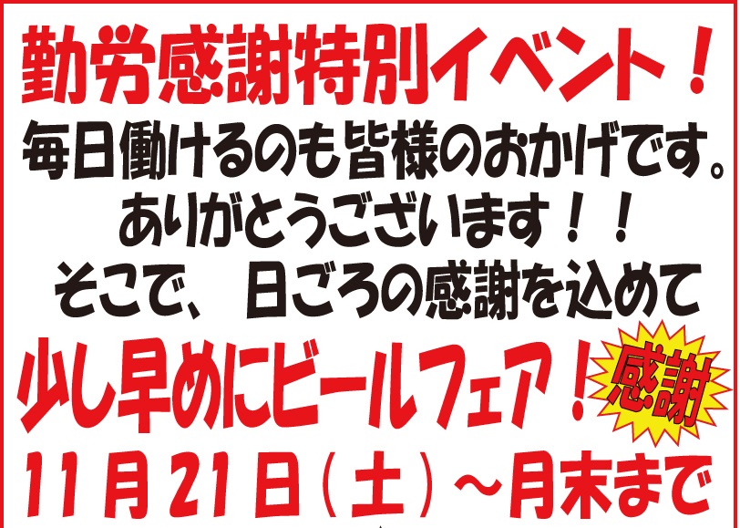 いつもお疲れ様です! 勤労感謝イベント 開催中!みんなのテンホウ。