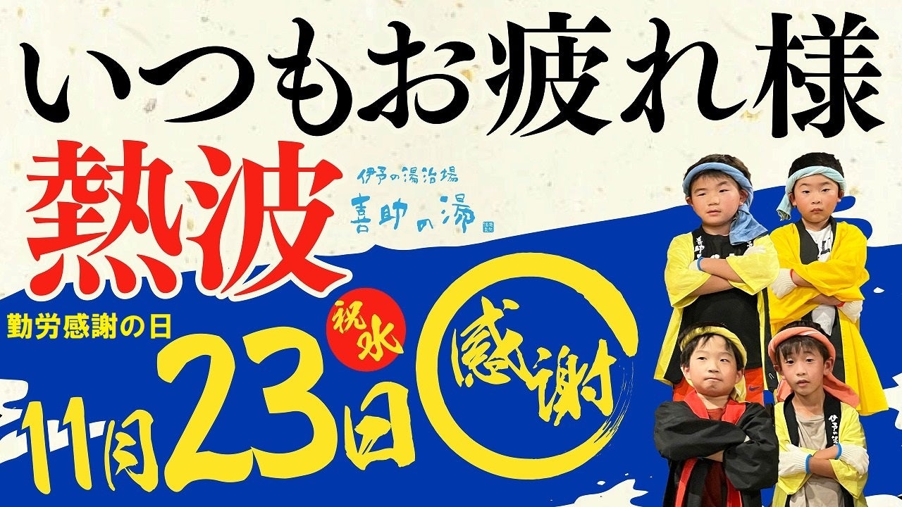 勤労感謝の日 「ちびっこ熱波隊」が、巨大うちわを使った「熱波」で、感謝の気持ちを伝える人気イベントを今年も開催!働くお父さんの日々のストレスや疲労感を「熱波」が吹き飛ばします!キスケ株式会社のプレスリリース。