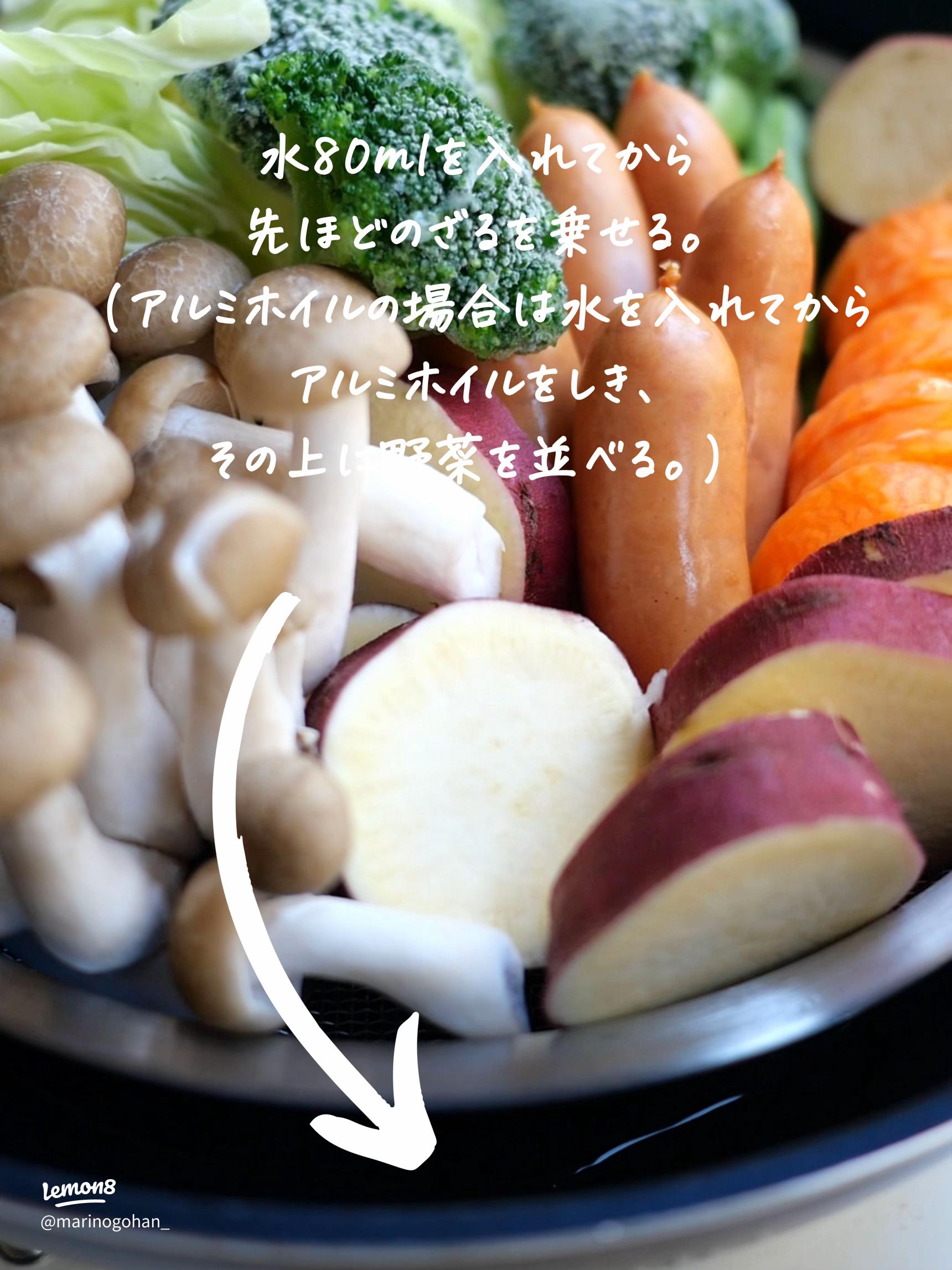 蒸籠ひとつで作るヘルシー温野菜弁当♩rii*ごはんアルバム。