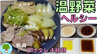 簡単ヘルシー温野菜の作り方 つけダレ4種類で味変ダイエット。