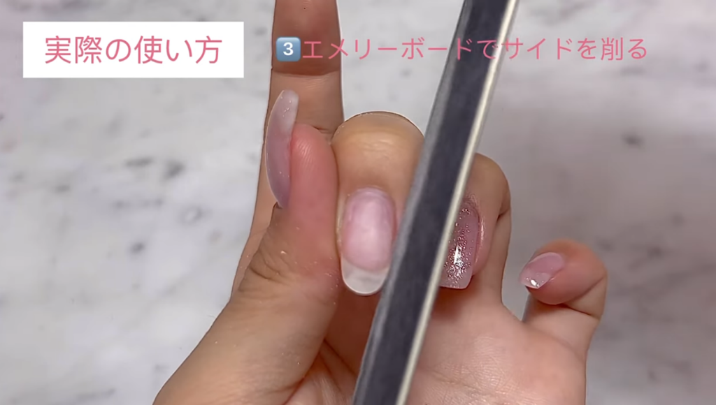 ファイルの使い方と爪の形の整え方 プロvs素人シリーズ① 初めてのセルフネイル①を見てから数回練習後のチェックと手直し - YouTube。