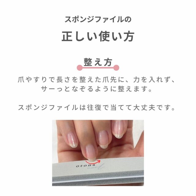 ネイルケアの手順 ステップ1 ファイリング・爪の形を整えるONE PLUS NAIL。
