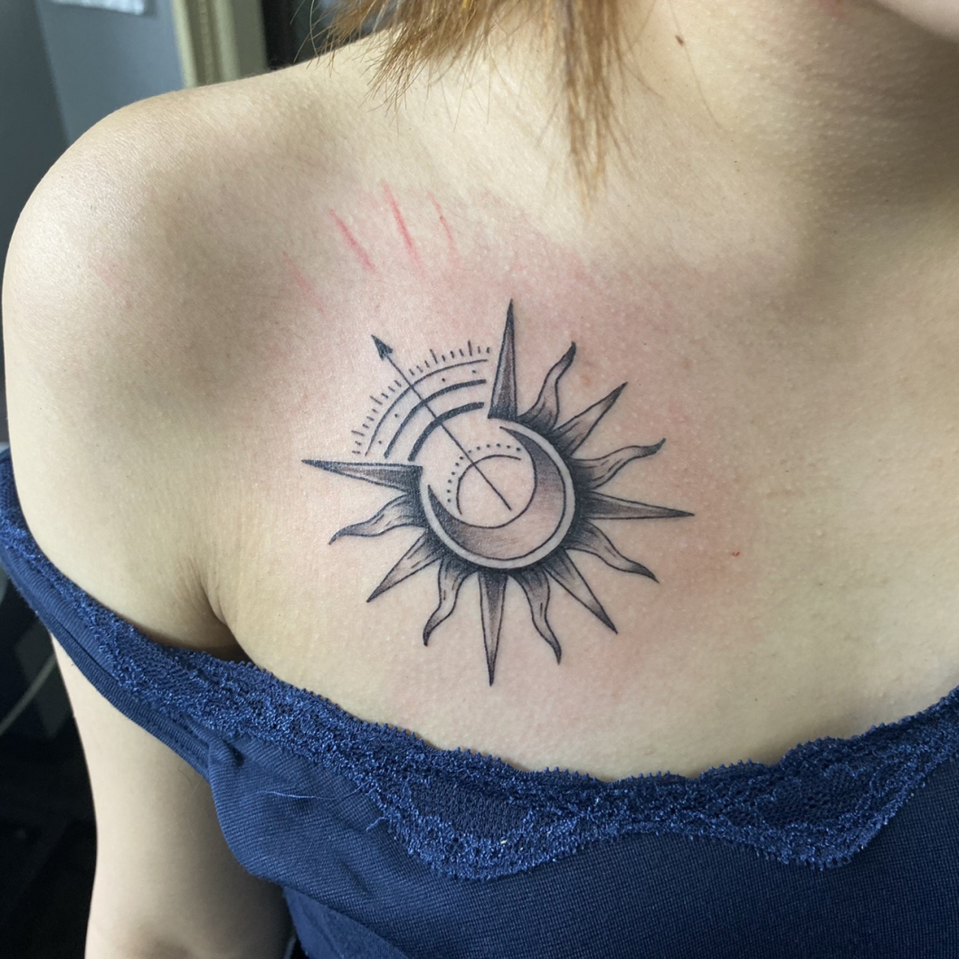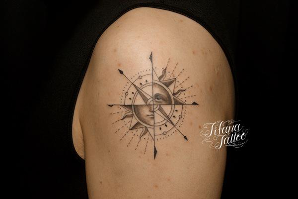 太陽・月・コンパス金沢市・野々市市のタトゥー TATTOO・刺青 ならBee's Stingビーズスティング一般社団法人日本タトゥー イスト協会加盟店。