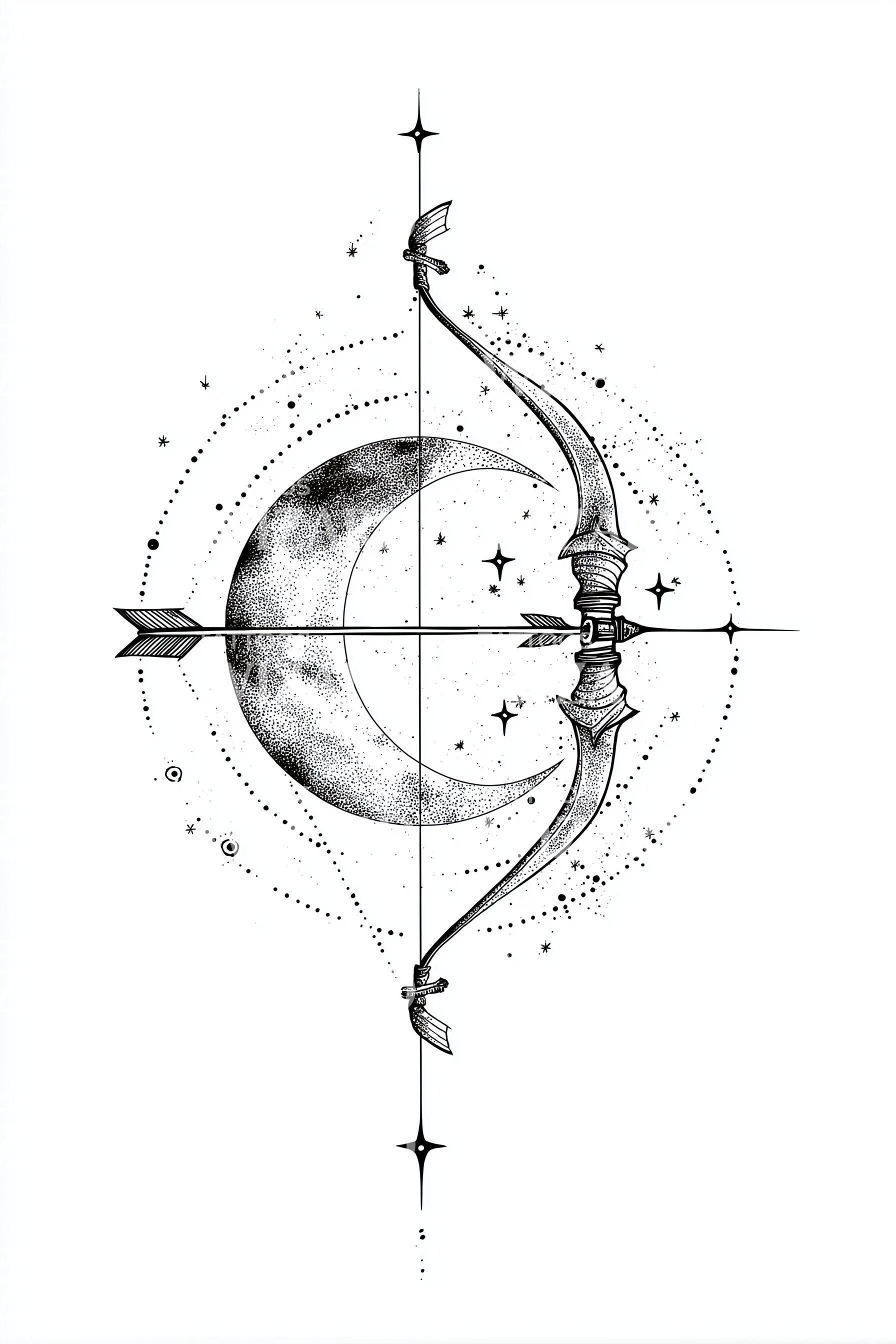 月のコンパス幾何学タトゥーデザイン – Tattoos Wizard Designs。