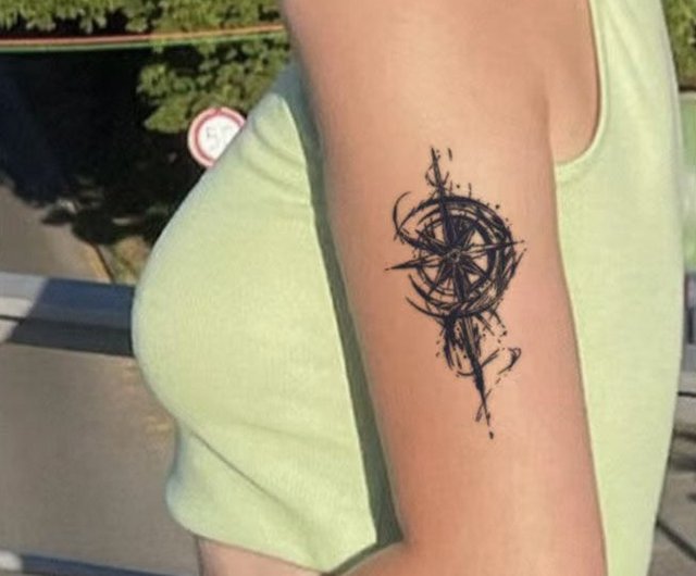 写真2枚を送る星と月のコンパス リアルな半永久タトゥー柄 ハーバルタトゥーステッカー シミュレーション 長持ち メンズ - ショップ TOUCHU tattoo タトゥーシール - Pinkoi。