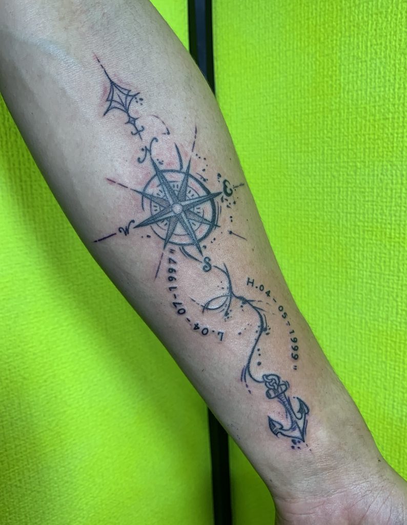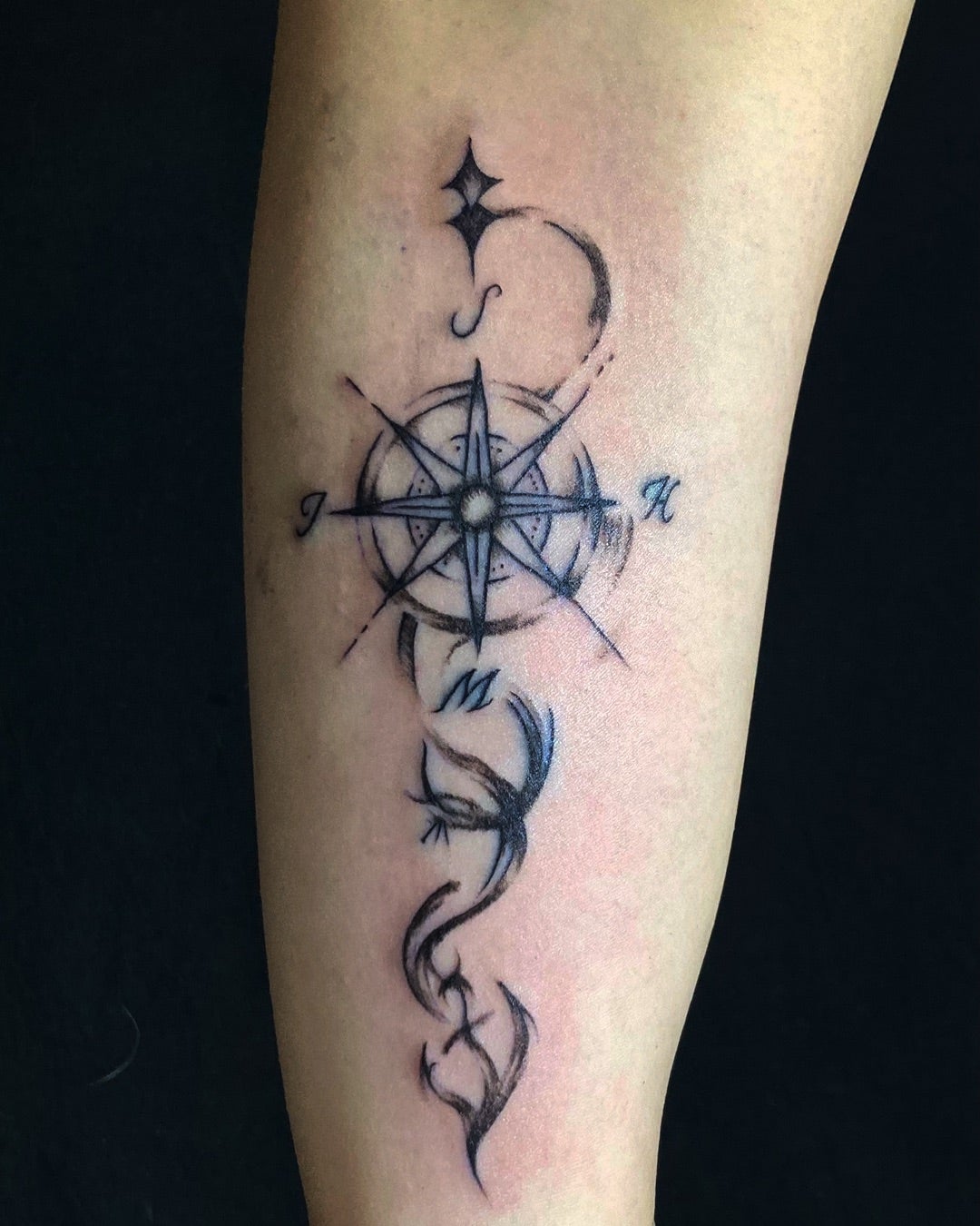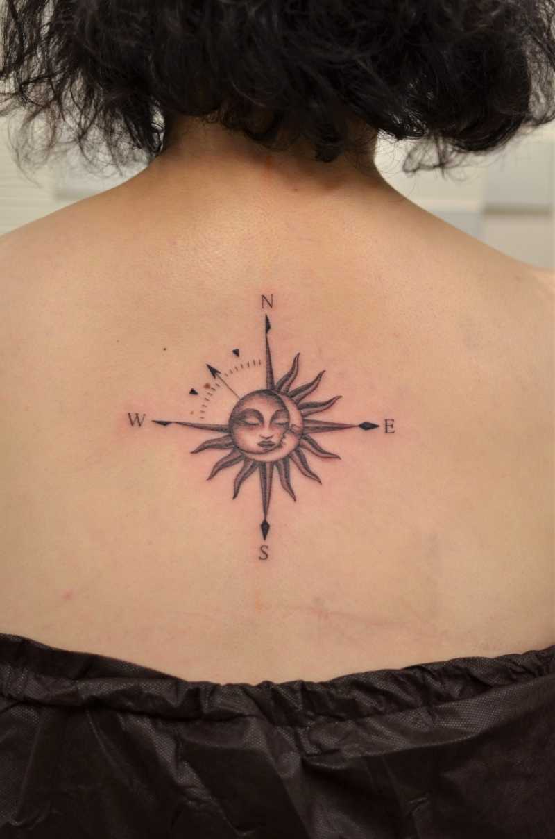 コンパス 方位磁針 のタトゥーに意味はある?太陽などとのデザインも紹介。