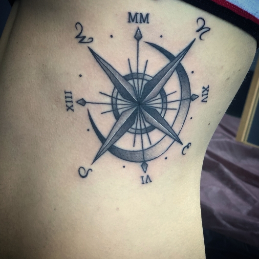 コンパス・お花・月と太陽のtattooSTROKER TATTOO。