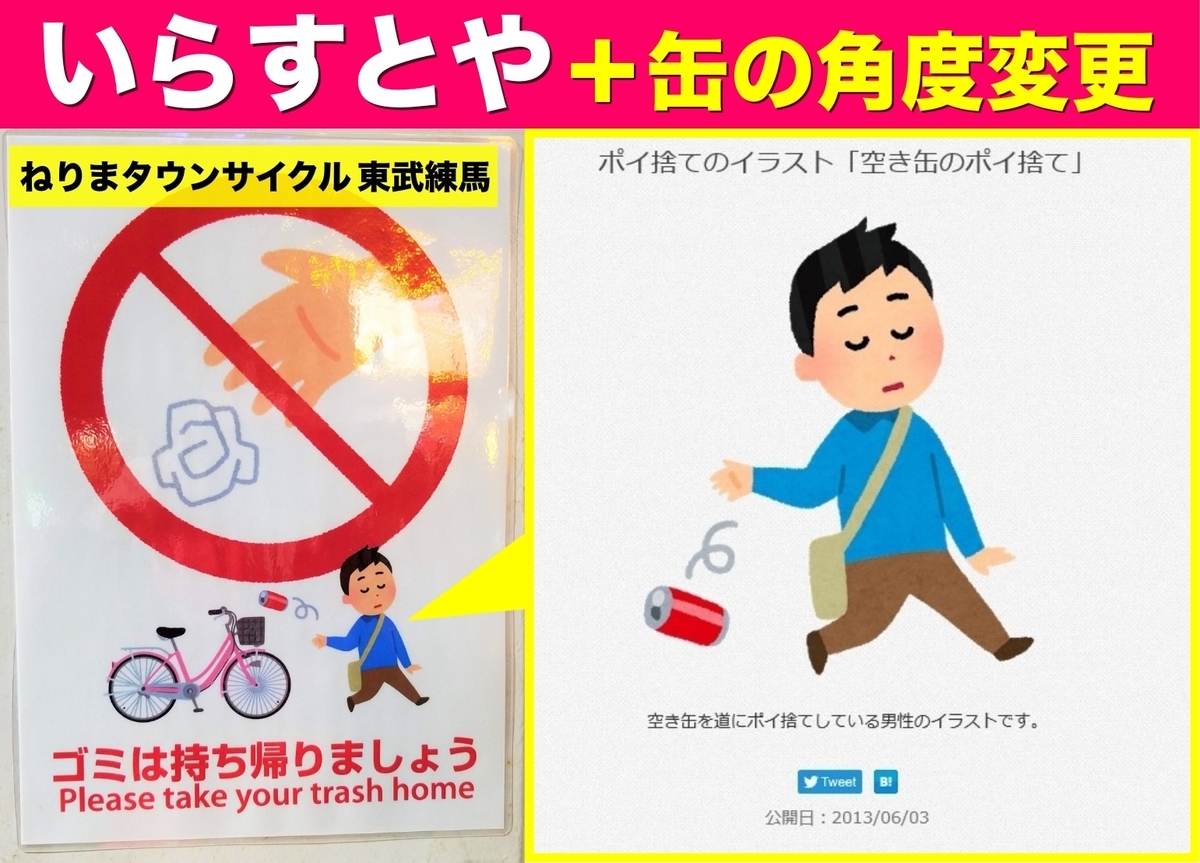 三浦靖雄 on X: "登録709号は700号を撮りに行った時に見つけたあきる野市の東秋留駅近くの道端にあったポイ捨て禁止 のお願い。貴重な行政が設置した「公的いらすとや」というタイプです。使用は「空き缶のイラスト」。いらすとやいらすとやマッピング ↓ いらすとや。