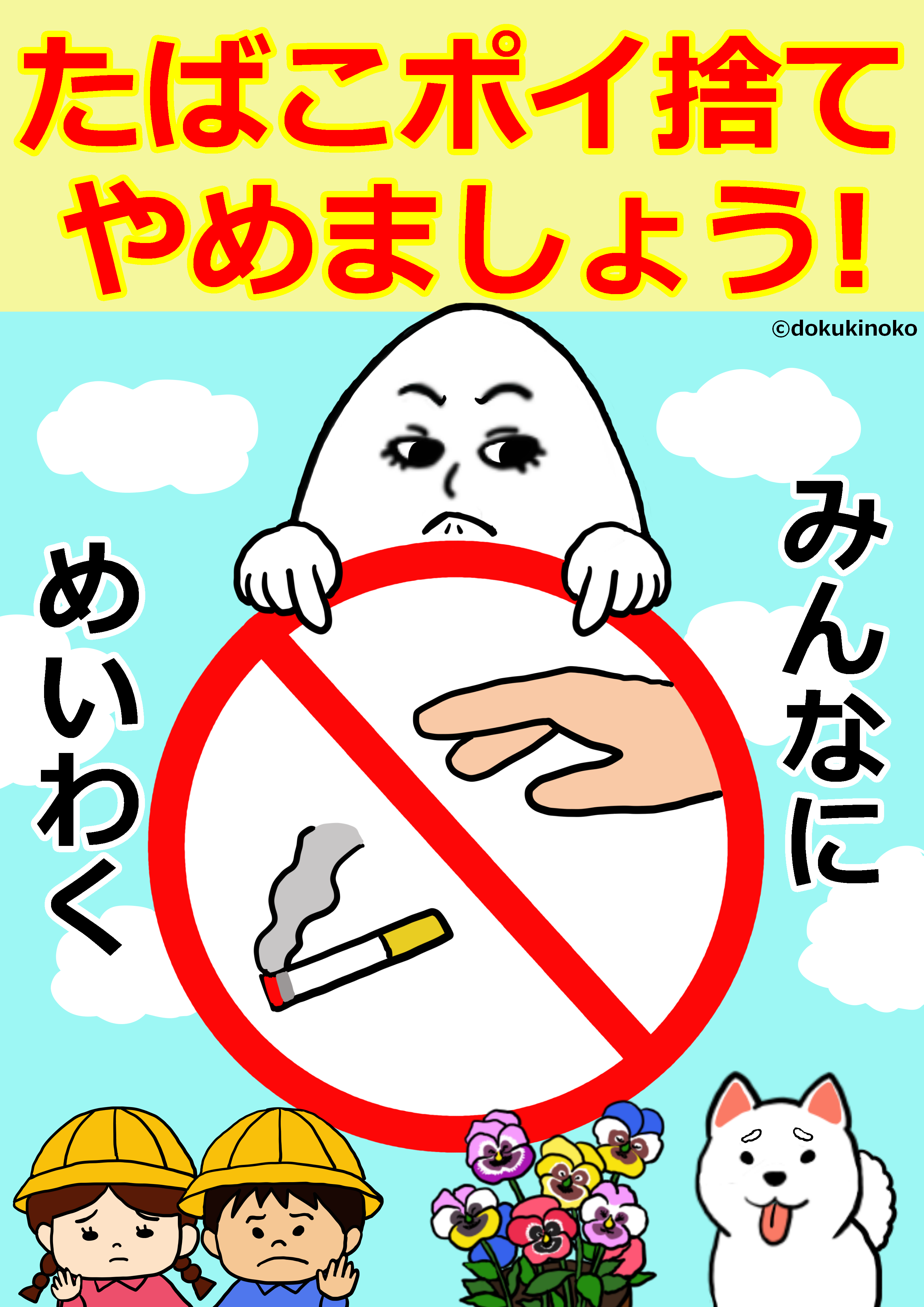 たばこポイ捨て禁止ポスター 無料イラストフリー素材イラストレーターdokukinokoの「成長日記」。