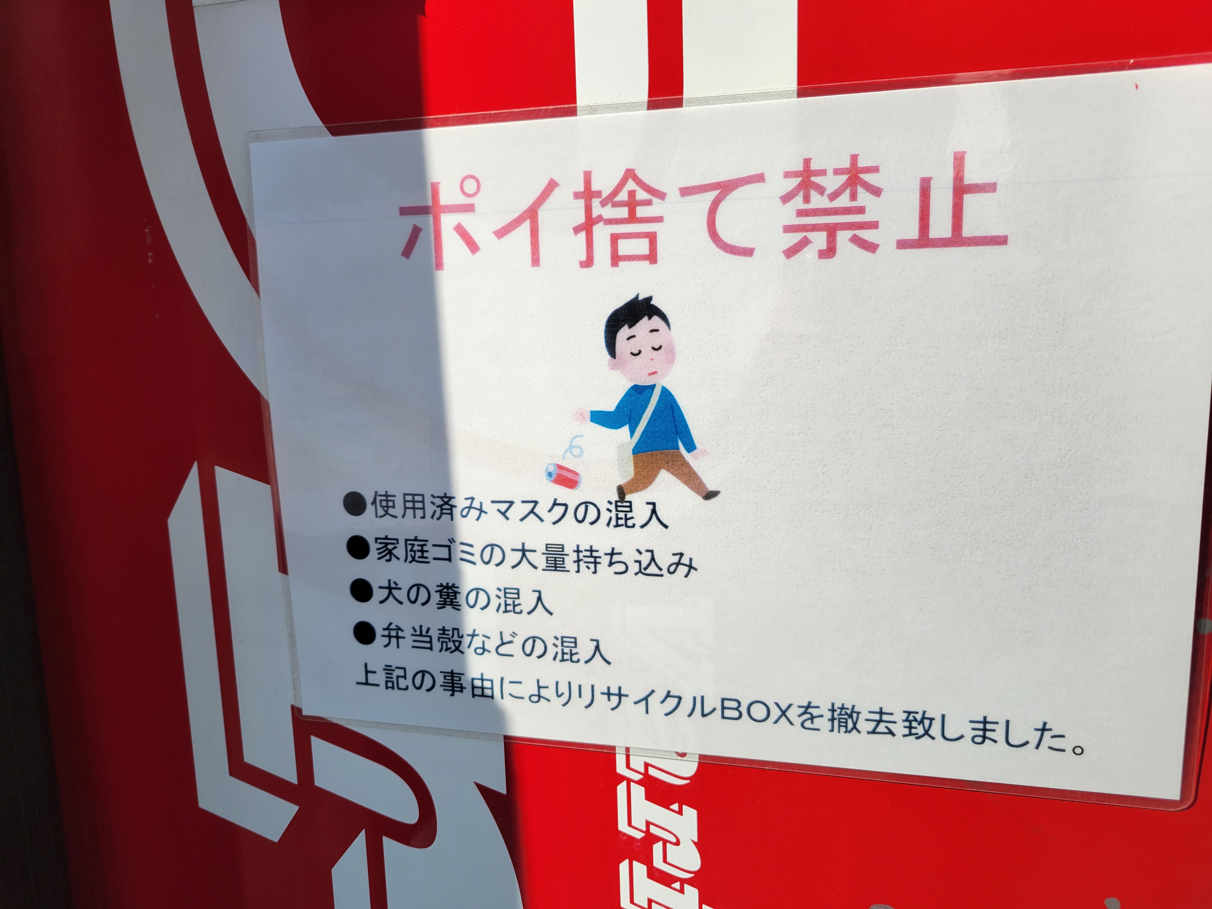 三浦靖雄 on X: "登録960号は武蔵新田の森の園茶舗の前の自販機「ポイ捨て禁止」張り紙。もともと空き缶入れがあったのですがマスクを入れる奴や犬の糞を入れる奴がいたので撤去されたという悲しいストーリーが書かれています。いらすとやいらすとやマッピング。