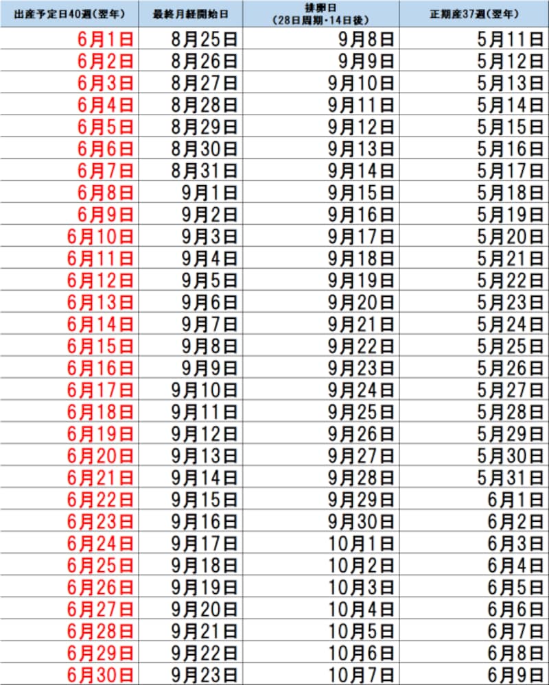 出産予定日早見表で最終月経開始日・排卵日・受精日・行為日も逆算 カレンダーで簡単計算妊娠の基礎知識All About。