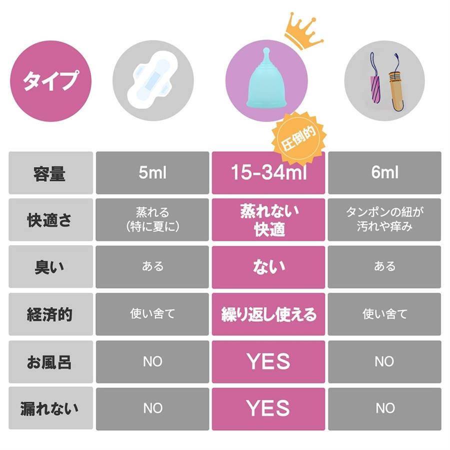 月経カップ一般医療機器 使い方簡単 生理用品 ボール型 初心者向け 生理用ナプキン タンポン 血カップ 4色 3サイズ。