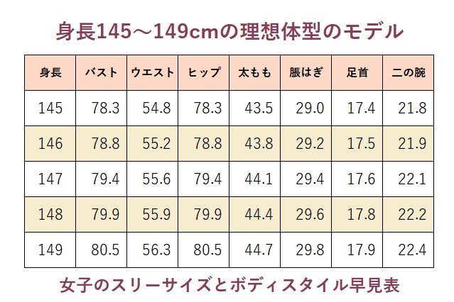 150-154cm⇒女性モデルの平均ウエスト・バスト・ヒップ!スリーサイズBIJOHビジョー。