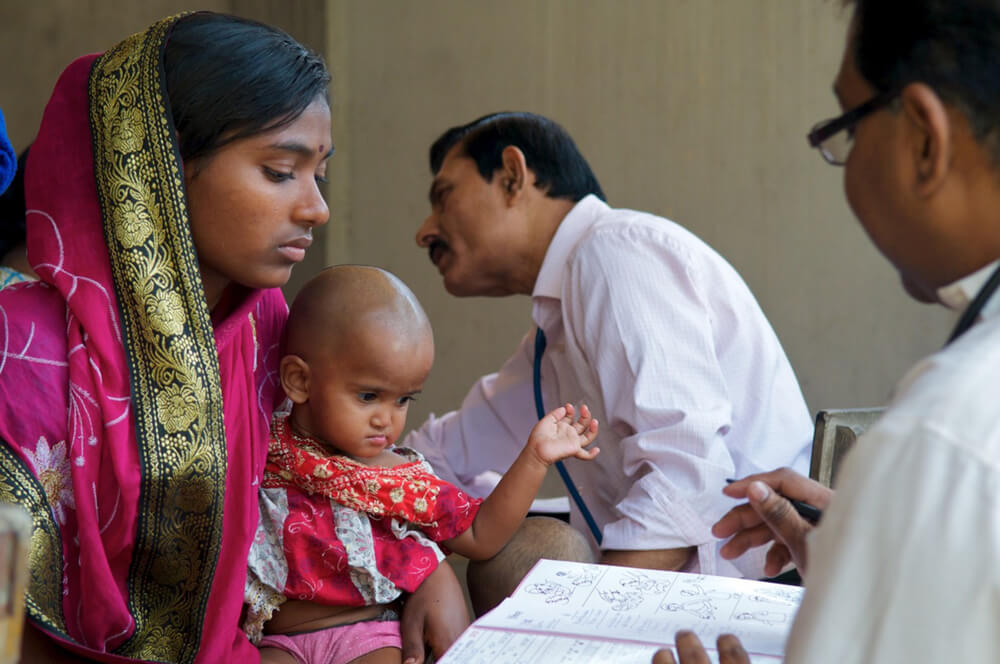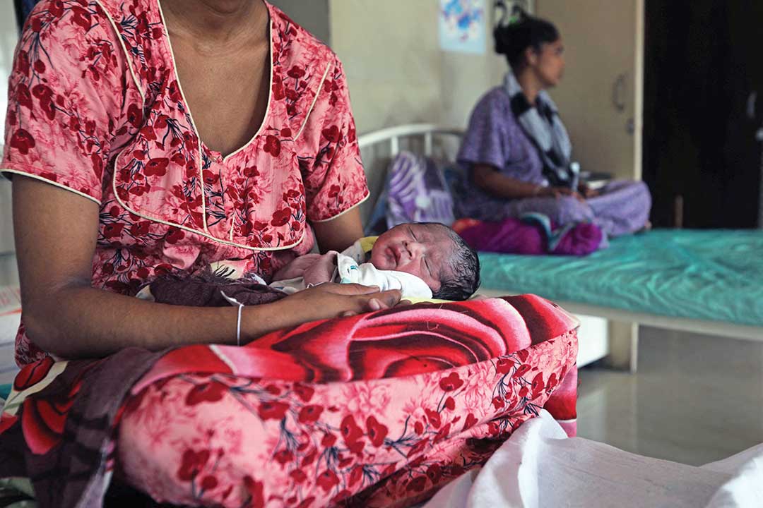 すやすやと眠る赤ちゃん。 インドの貧しい家庭や都市から遠く離れた地方の家庭では、母親が自宅で出産する習慣がありますが、医療体制が十分でないことから、幼い命が危険に晒されるケースも多くあります。ユニセフは、お母さんと赤ちゃんの命を守るために、病院での出産。