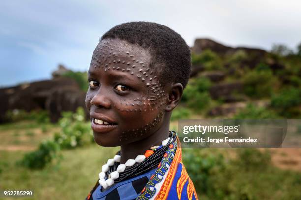 スカリフィケーションは、アフリカの民族グループの間で重要な文化的慣習であり、石、ナイフ、またはその他の道具を使って皮膚に浅い切開を施し、意味のあるデザインを作り出すものです。これらのデザインは、氏族のアイデンティティや精神的な信念を象徴し、深い文化的。