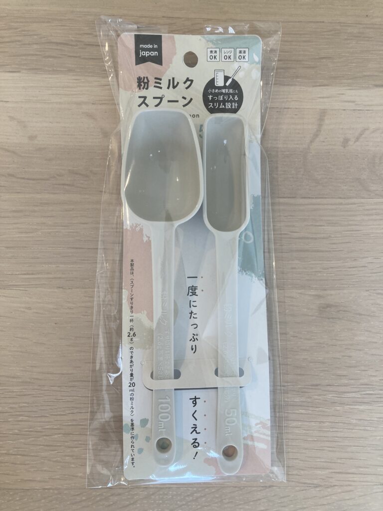 粉ミルクのスプーンは100均の物で代用できる?50mlや100ml用の大きい粉ミルクスプーンが欲しい!セリアの粉ミルクスプーンを試してみた。