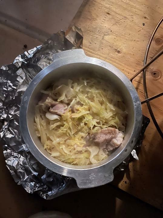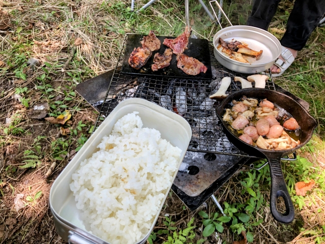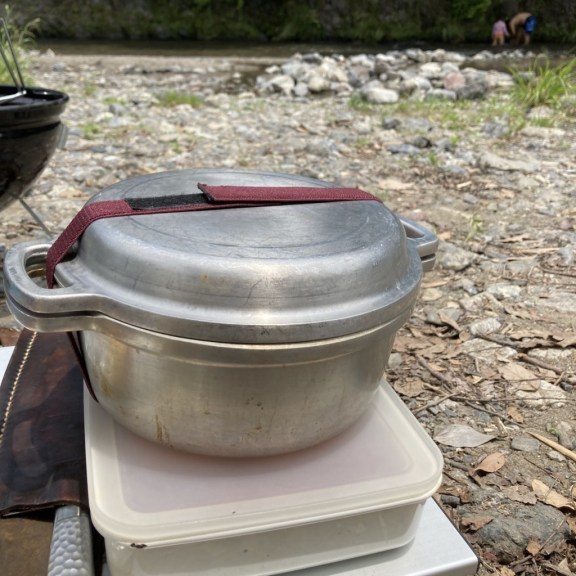 キャンプ飯に無水鍋持ち運びが便利で1台4役鍋にもフライパンにも皿にも容器にも便利家事だんな。