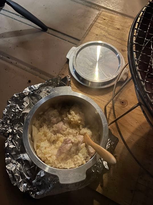 HALムスイのKING無水鍋 20cmで, 鍋炊飯しました🍚, キャンプでも家でも使う炊飯鍋です🤭, 紹介した道具はストーリーあげときます♡,みなさんのお話しながら楽しかったです〜☺️🙏, 長いから、早送りして見てね。笑,画面右 左 端長押し , ., ., いわしの梅入り甘露煮,・いわし 12尾, ・水200ml, ・酒50ml, ・砂糖大さじ1.5, ・醤油大さじ2,。