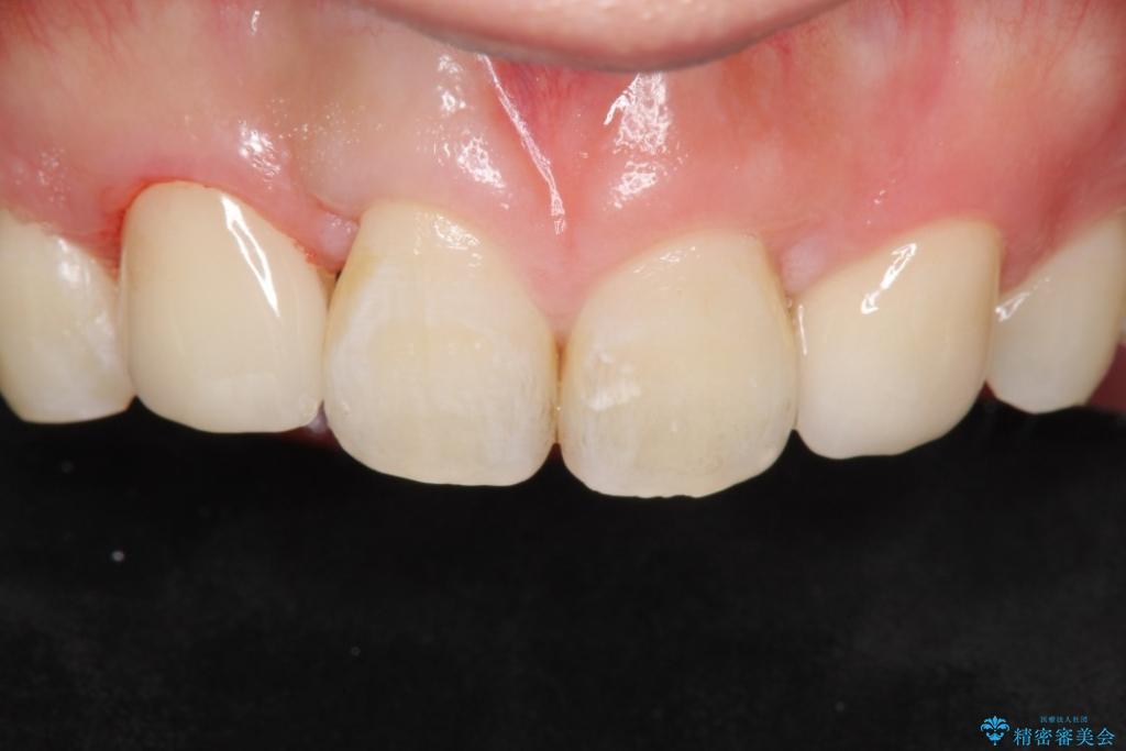 尖った犬歯を目立たなくする ラミネートベニア修復 他院の矯正治療で前歯の隙間が残ったのを回復 医 精密審美会。