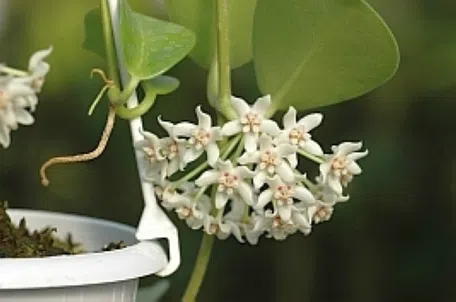ホヤ・ラクノーサ吊り鉢白い花をたくさん咲かす希少種 育て方付き。