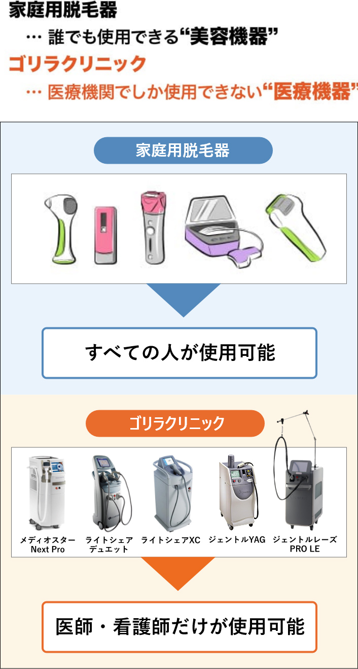 家庭用脱毛器 家庭用脱毛器とクリニックでの医療レーザー脱毛機。