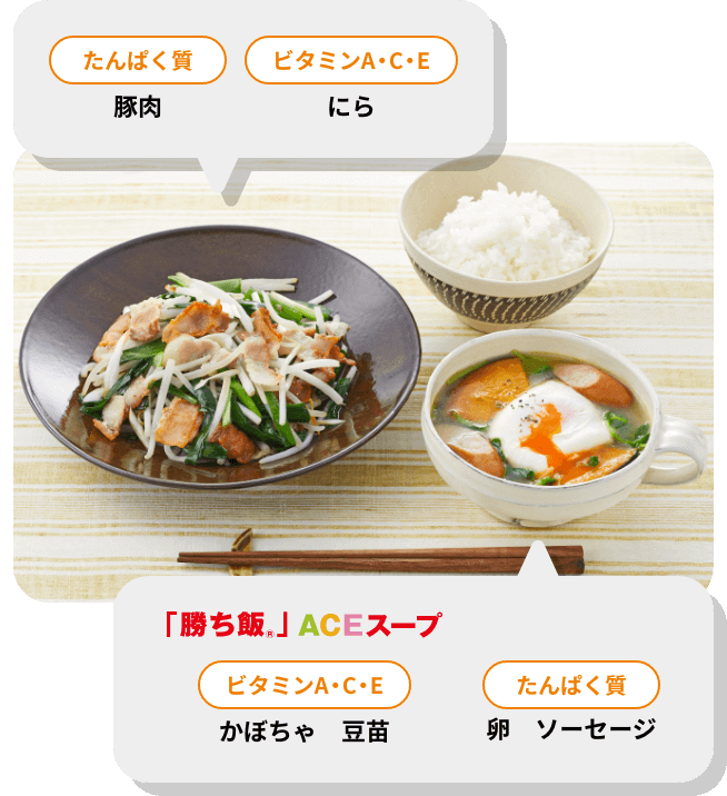 栄養バランスのよい食事で免疫力アップ!献立・レシピ「勝ち飯®」「勝ち飯®」味の素株式会社。