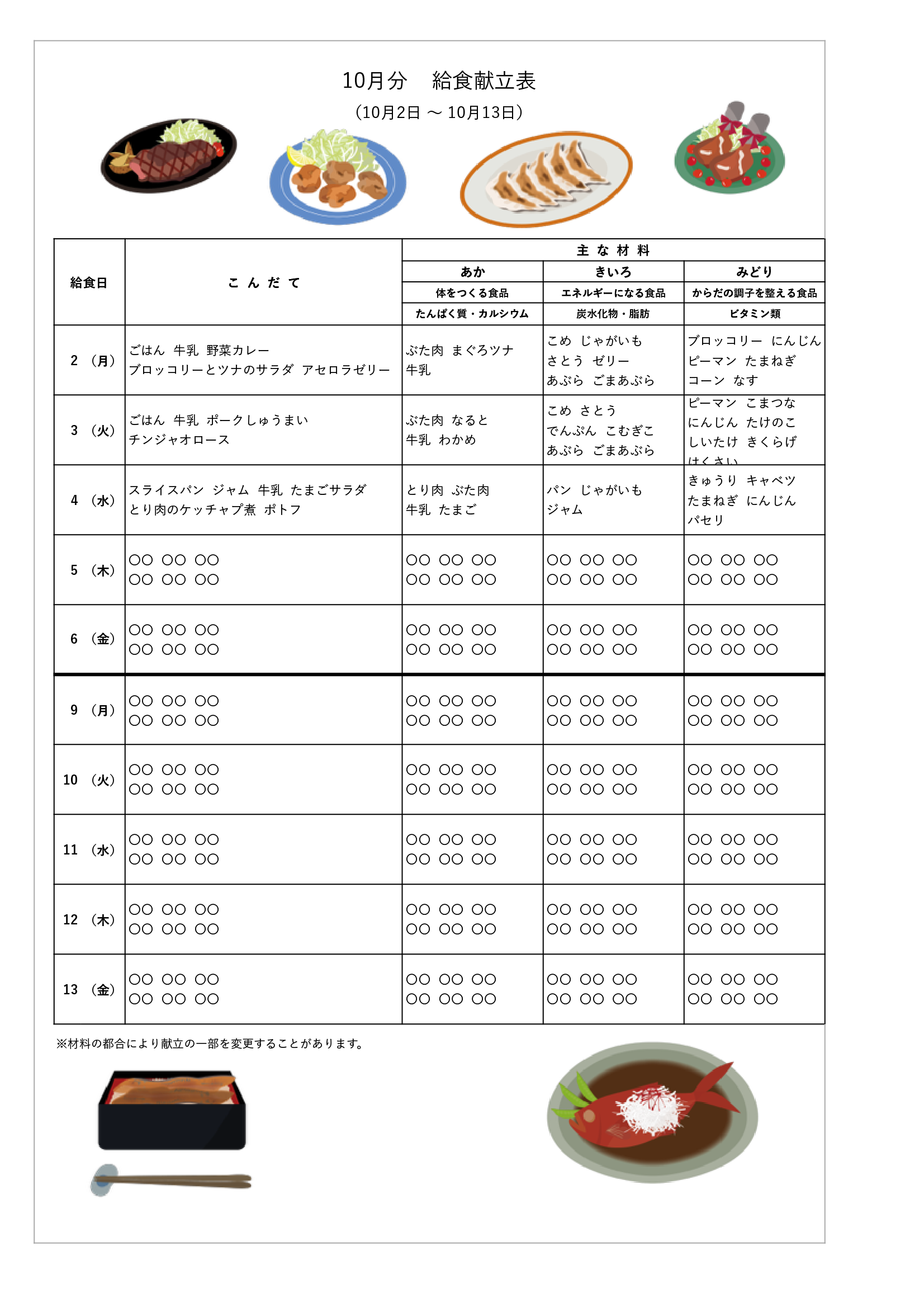 献立表栄養バランステンプレート_食育 エクセル・ナンバーズ無料テンプレート Mac・Windows 『ひな形ジャーナル』。