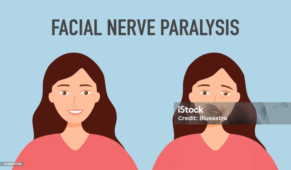 顔面神経麻痺、ベル麻痺、片側顔面神経麻痺の女性を示す3Dイラストの写真素材・画像素材 Image 164275190。