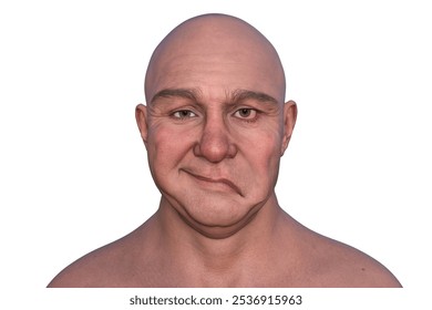 顔面神経麻痺、ベル麻痺、片側顔面神経麻痺の男性を示す3Dイラストの写真素材・画像素材 Image 164565991。