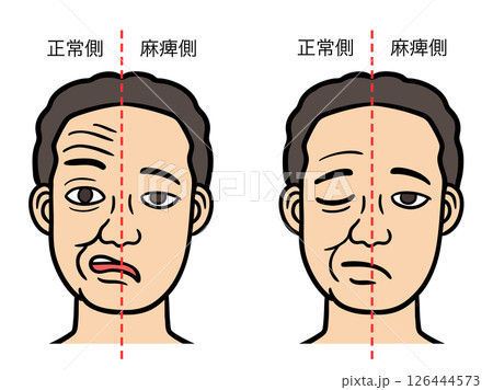 脳梗塞の前兆症状、顔面麻痺のイラスト素材86658581- PIXTA。