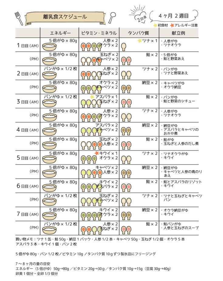 離乳食中期 生後7~8ヶ月頃・モグモグ期 の1週間分レシピ!一目でわかる買い物リストつき♪Baby-mo ベビモ。
