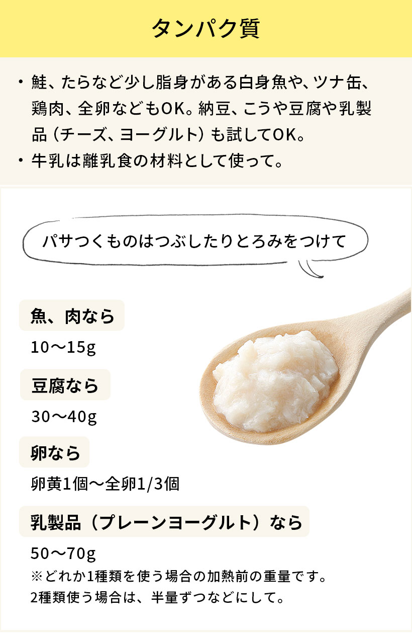 たんぱく質」は離乳食初期から毎日摂ろう!おすすめ食材、量やレシピを解説HugKum はぐくむ。