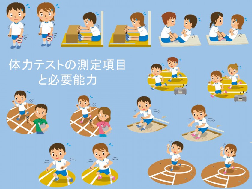 体力テストイラストなら、小学校・幼稚園向け・保育園向けのかわいい無料イラストお試しフリー素材 カット がいっぱいの安心サイトへどうぞ。