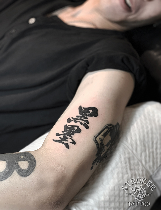 文字のタトゥー、和英アラビアSTROKER TATTOO。