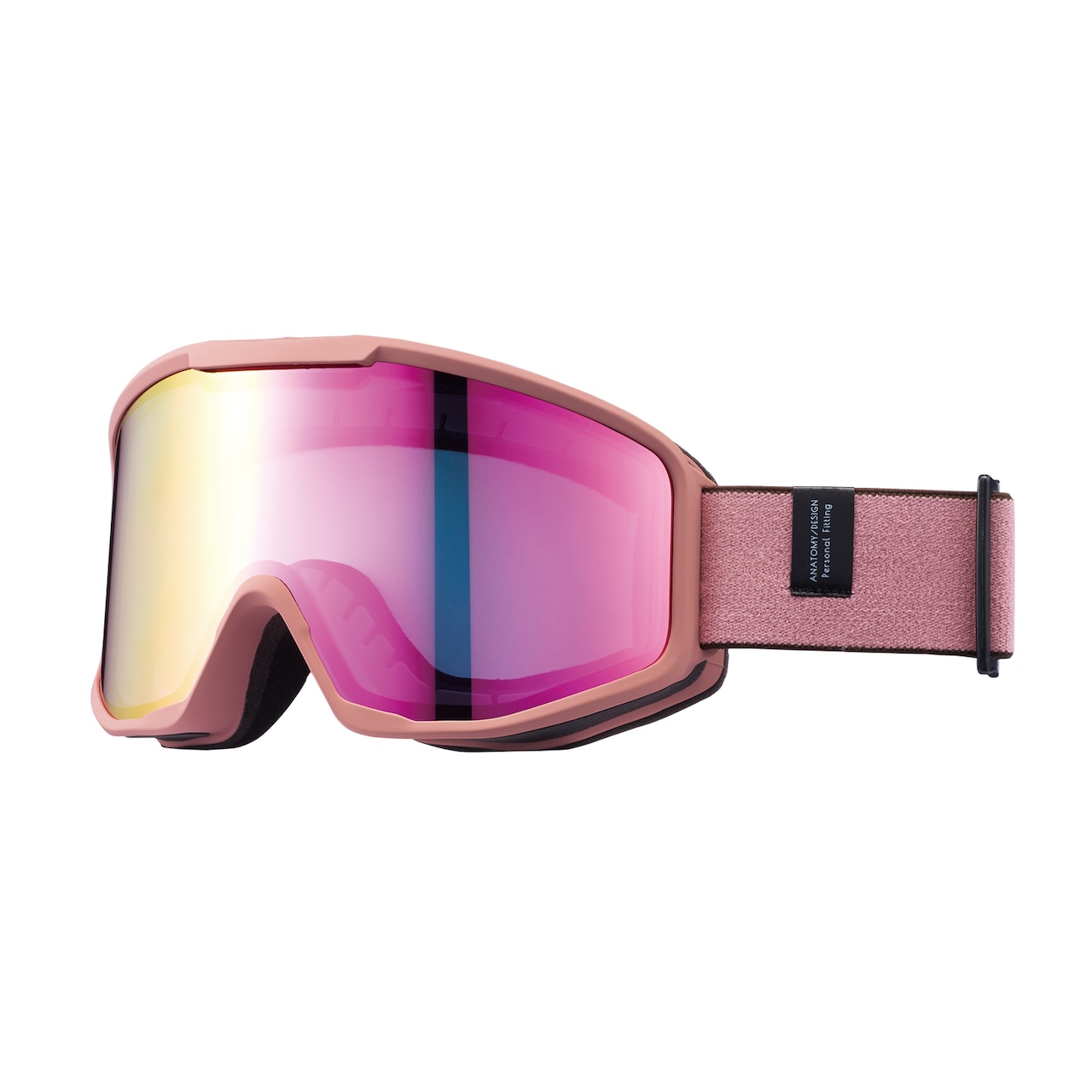 小顔でもフィット スノーゴーグル UVカット スキー スノボAX800-XS PKマットスモーキーピンク ピンクミラー コンパクトサイズ紫外線対策 曇り止め加工 大きいメガネ対応 ヘルメット対応 アジアンフィットAXE アックスAXE オフィシャルECショップ。
