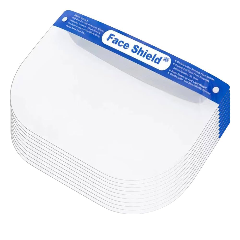 10枚保護シールド 曇り止め 飛沫 ほこり 花粉対策 HUOFUフェイスシールド 10枚 50枚100枚 フェイスガード 飛沫防止 faceshield 透明 軽量 ほこり 花粉対策 防塵 防災面 簡易防護面 曇り止め 顔保護 作業場 飲食 接客 介護 ペンキ塗り 草刈り 水洗い可 組立済50枚。