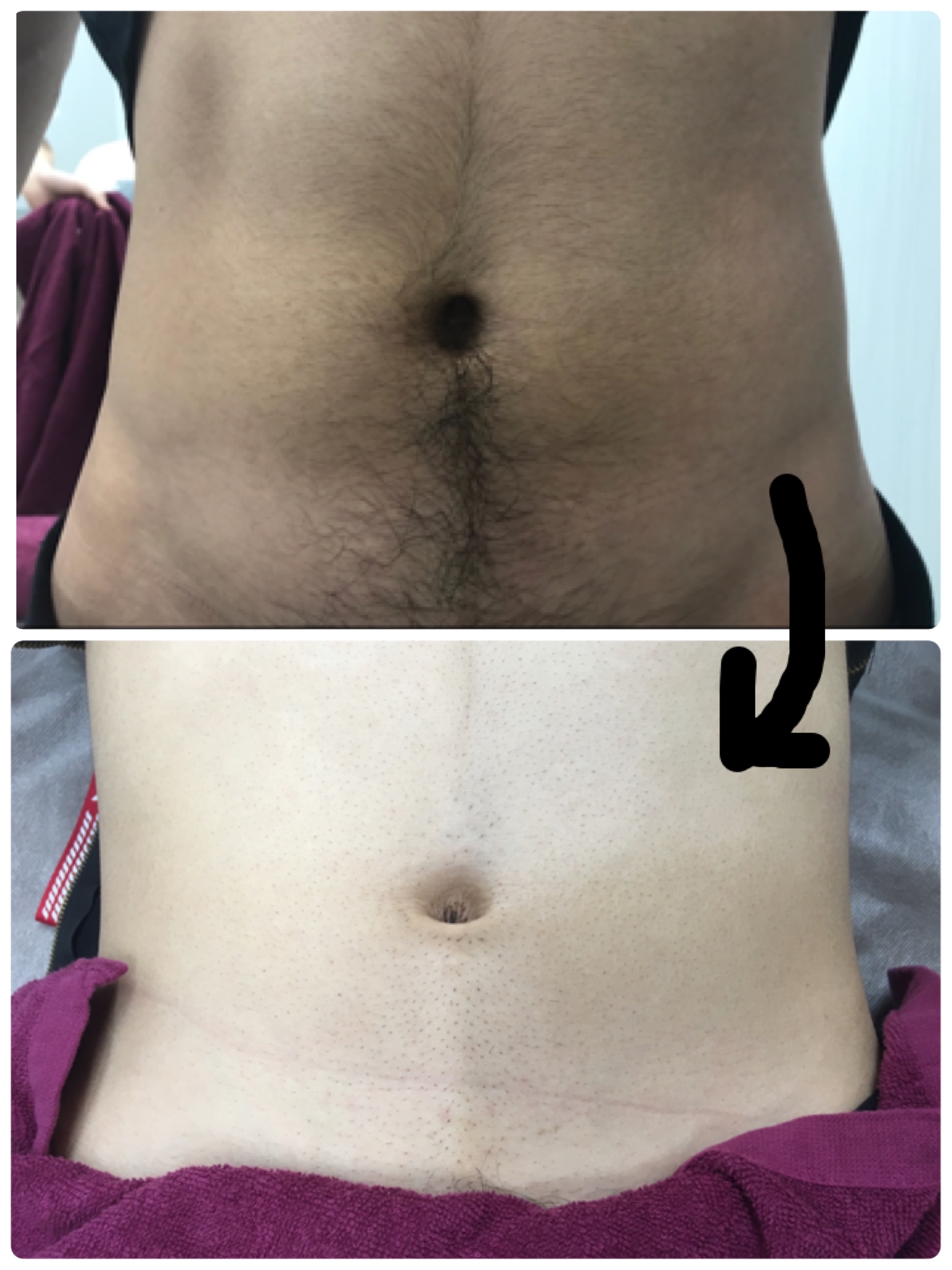 腹・へそ毛脱毛10回後203日経過名古屋栄メンズ脱毛・ヒゲ脱毛HARU。