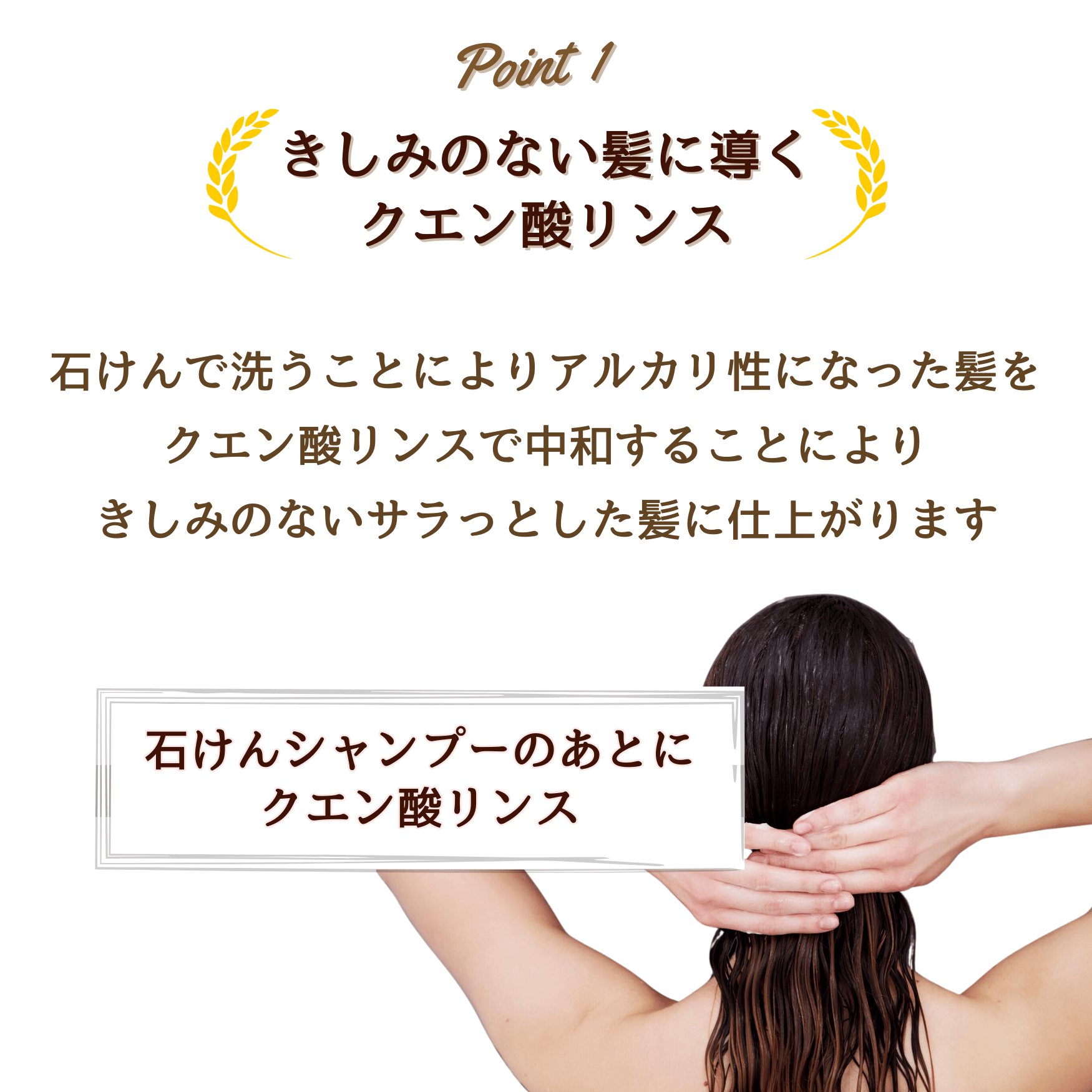 リンスの成分であるクエン酸とは何ですか?シャボン玉石けん。