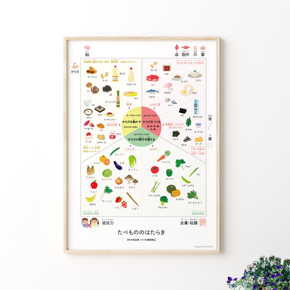お風呂対応 たべものの働き ポスター 栄養素 食事 エネルギ― A3サイズ インテリアSONORITE powered by BASE。
