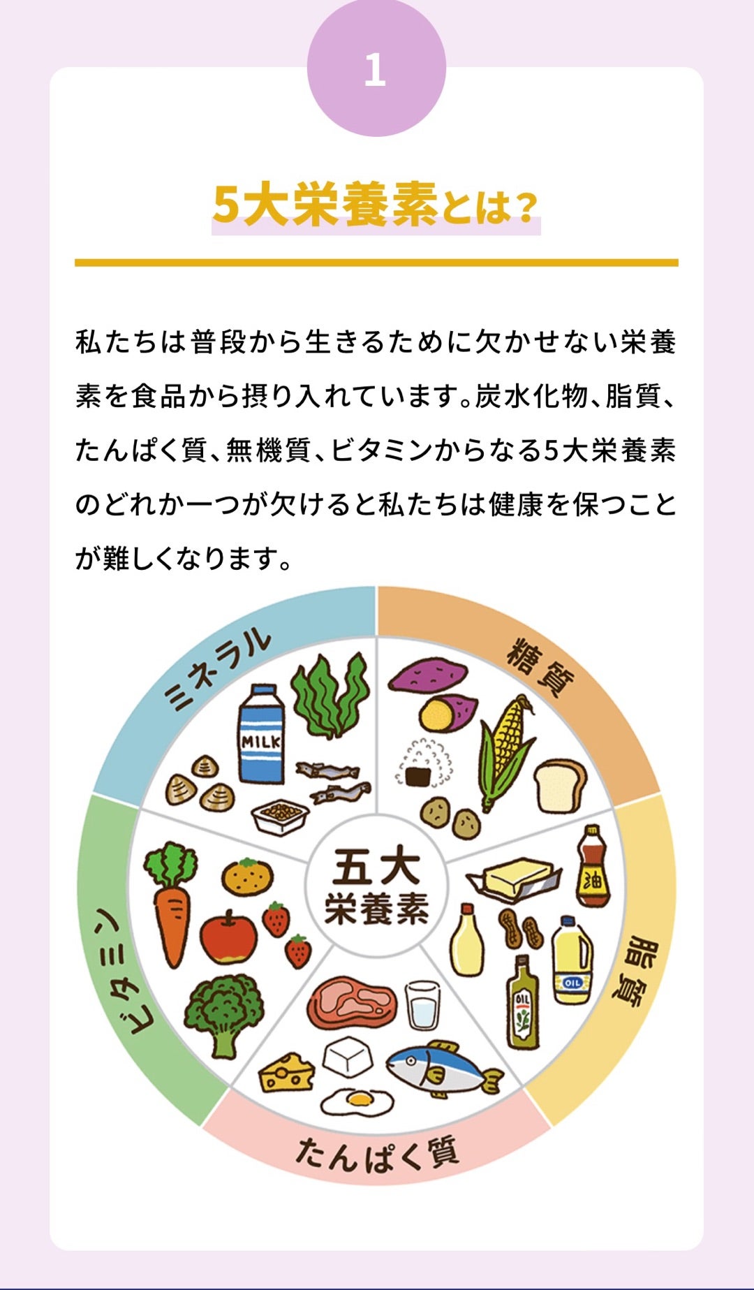 食育特集 生きていく上で欠かせない栄養素についてスクル。